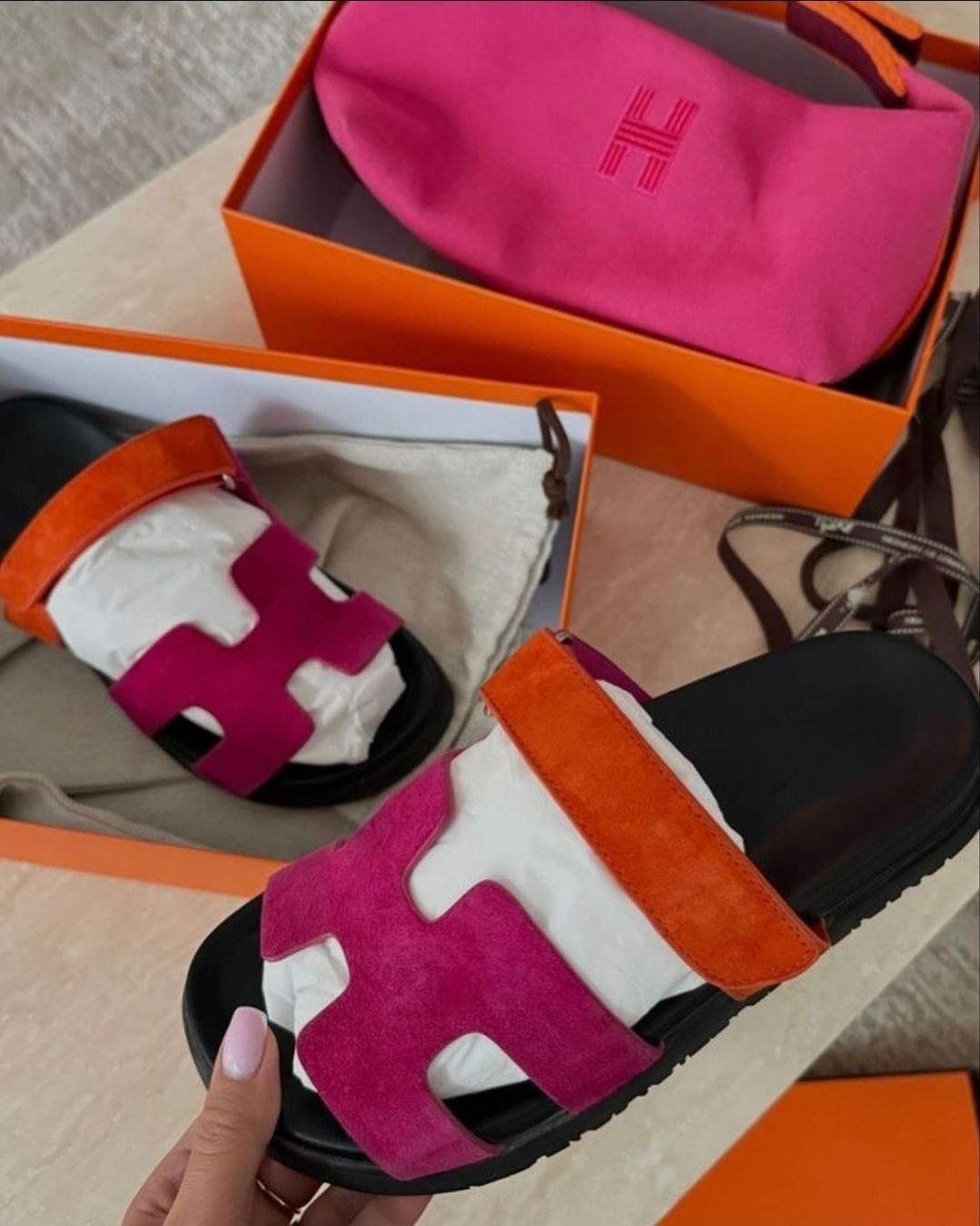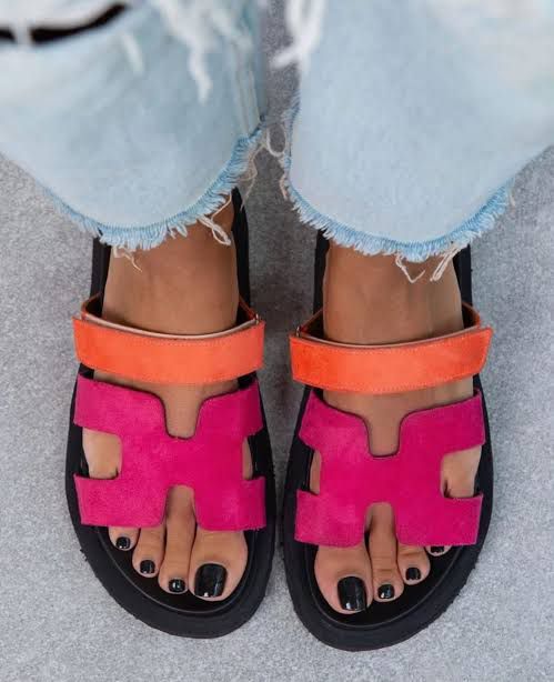 Hermes slipper pink with orange